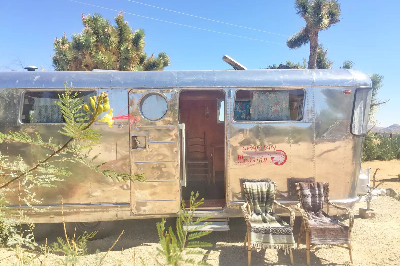 When people talk about van life, this is what they’re dreaming of: a spacious, refurbished trailer complete with a kitchen, a full bathroom and shower, a cozy bedroom, and 1.5 acres of land to freely roam. The 1950 Spartan was once owned by a family who used it to traverse the highways of America back in the 1950s, On the Road-style. You will feel damn cool staying in it, and we imagine Jack Kerouac would approve. Close to the park, you’re also less than 20 minutes away from J-Tree must-sees like the Integratron and Giant Rock. It’s available to rent through Hipcamp, which is kind of like Airbnb’s cousin who likes to camp.